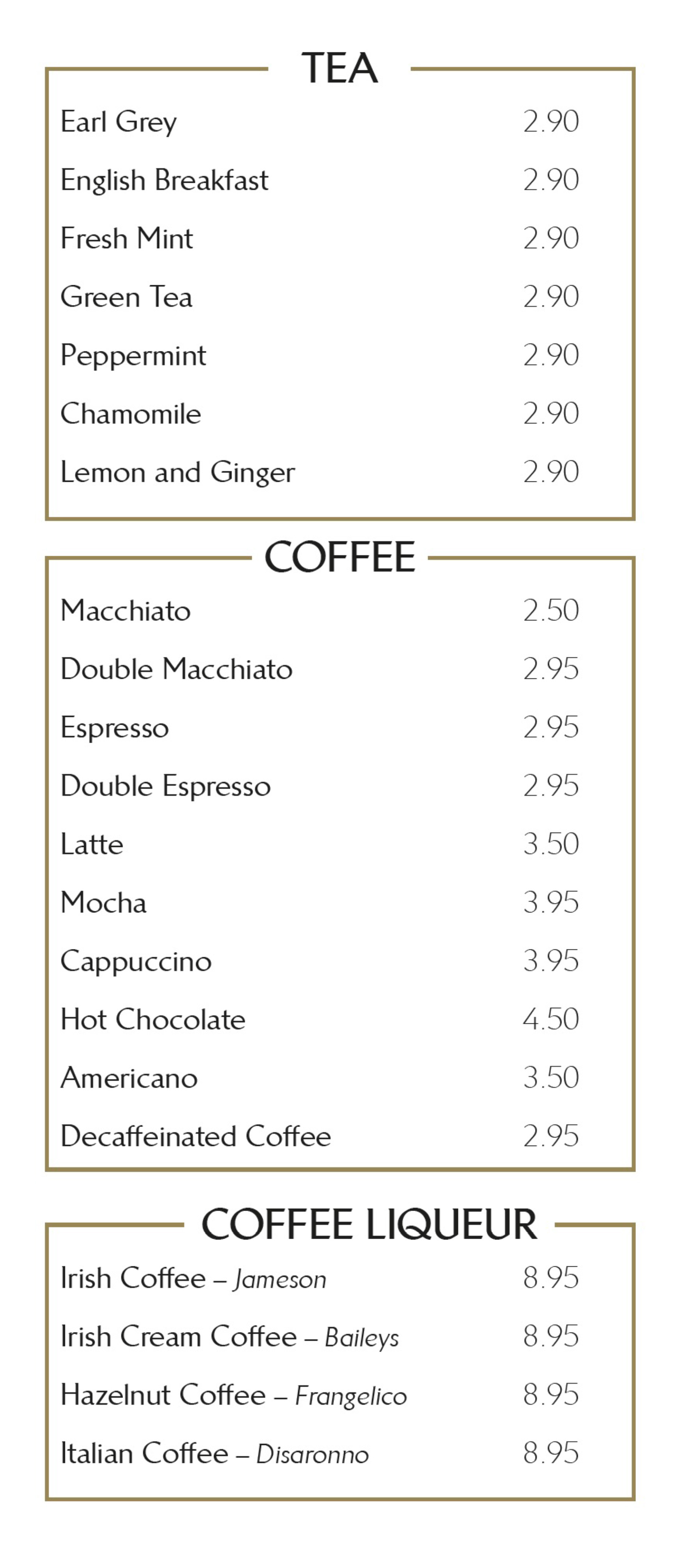 Drinks Menu
