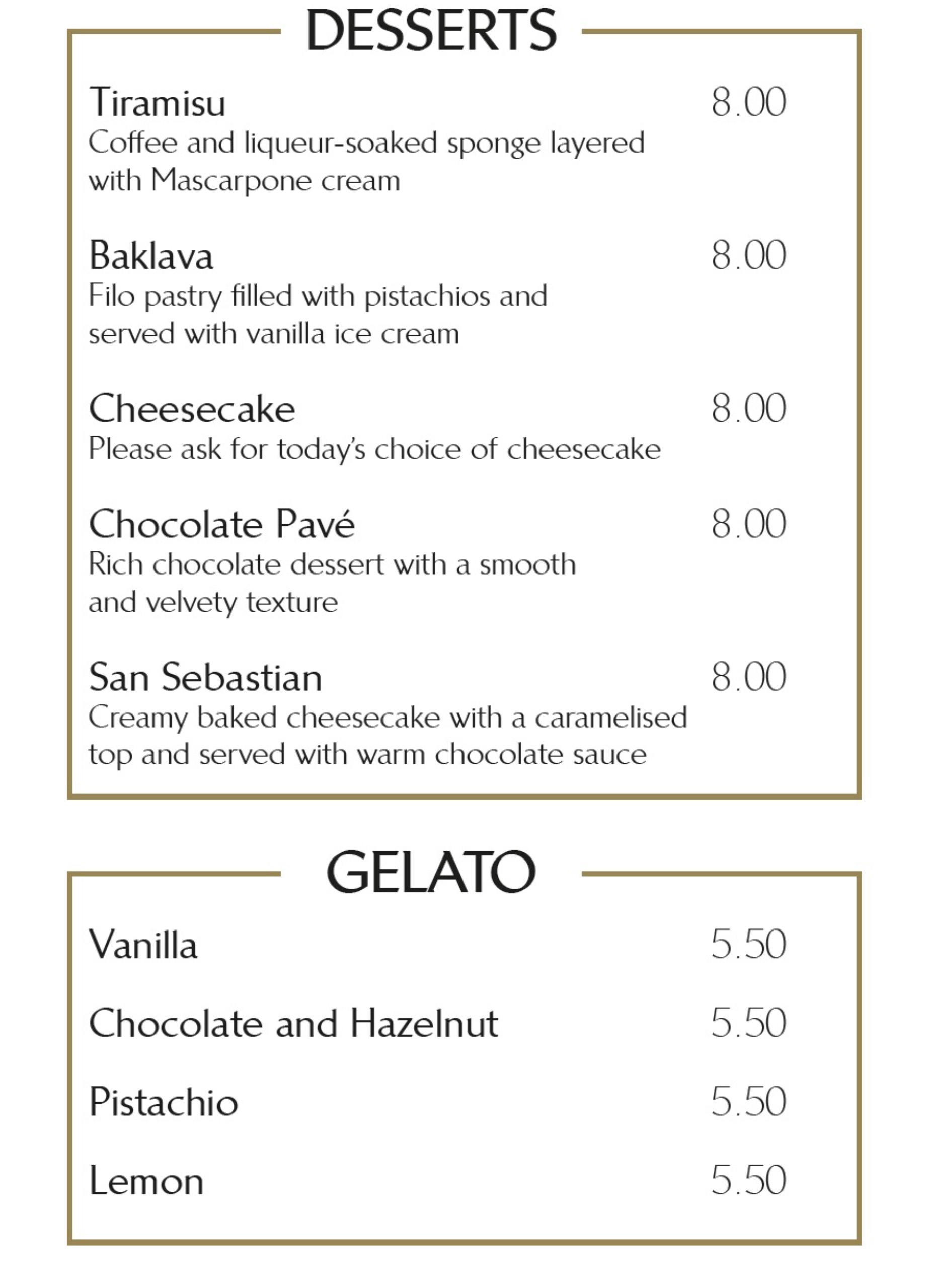 Desserts Menu
